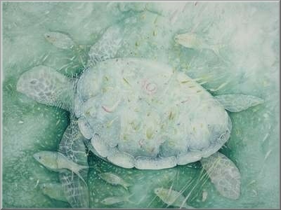 Meganne Forbes: "I am a watercolor artist living in Carpinteria, California. I draw inspiration from nature. Dolphins, whales, and sea turtles are some of the wildlife that are especially dear to me. Water lilies, orchids, hibiscus, and plumeria find their way into my art also. Hiking in these hills and swimming in the crystal waters of Hawaii, and wherever I travel, provides me with an ongoing stream of subjects and scenes. Life touches me, and that vision is what I paint." (Meganne's online gallery is at www.meganneforbes.com.)